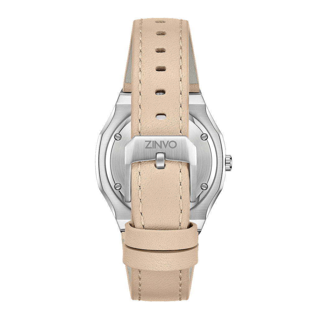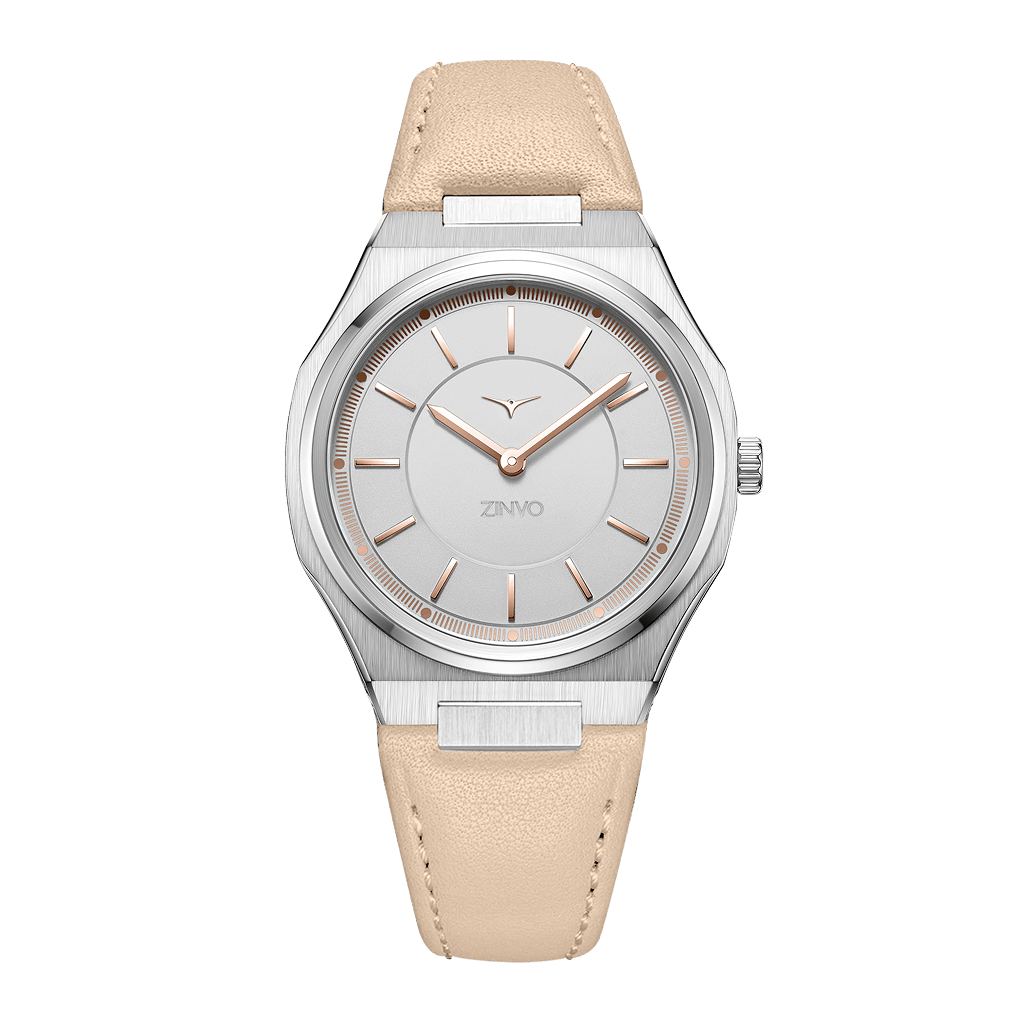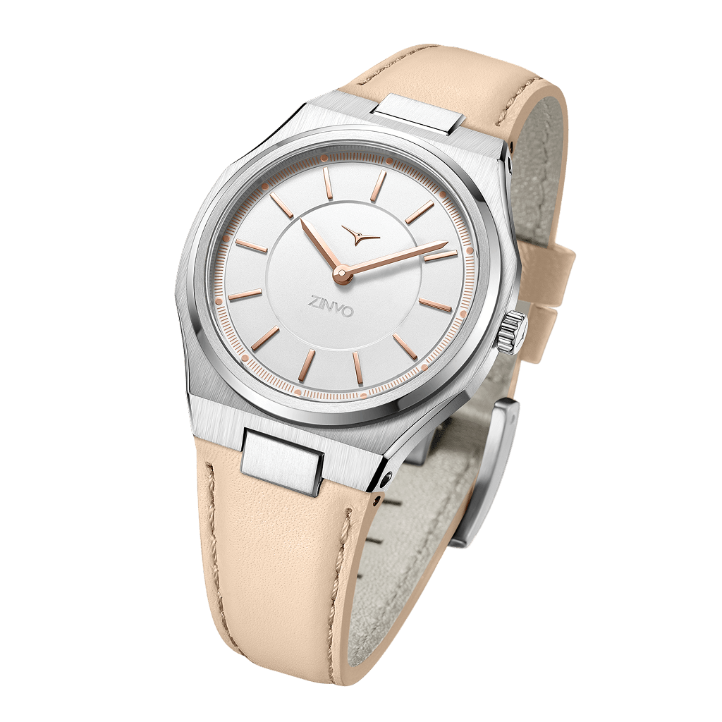 Soft sand hues meet gleaming yellow gold in this women’s watch, offering a versatile design that elevates any outfit with subtle luxury.