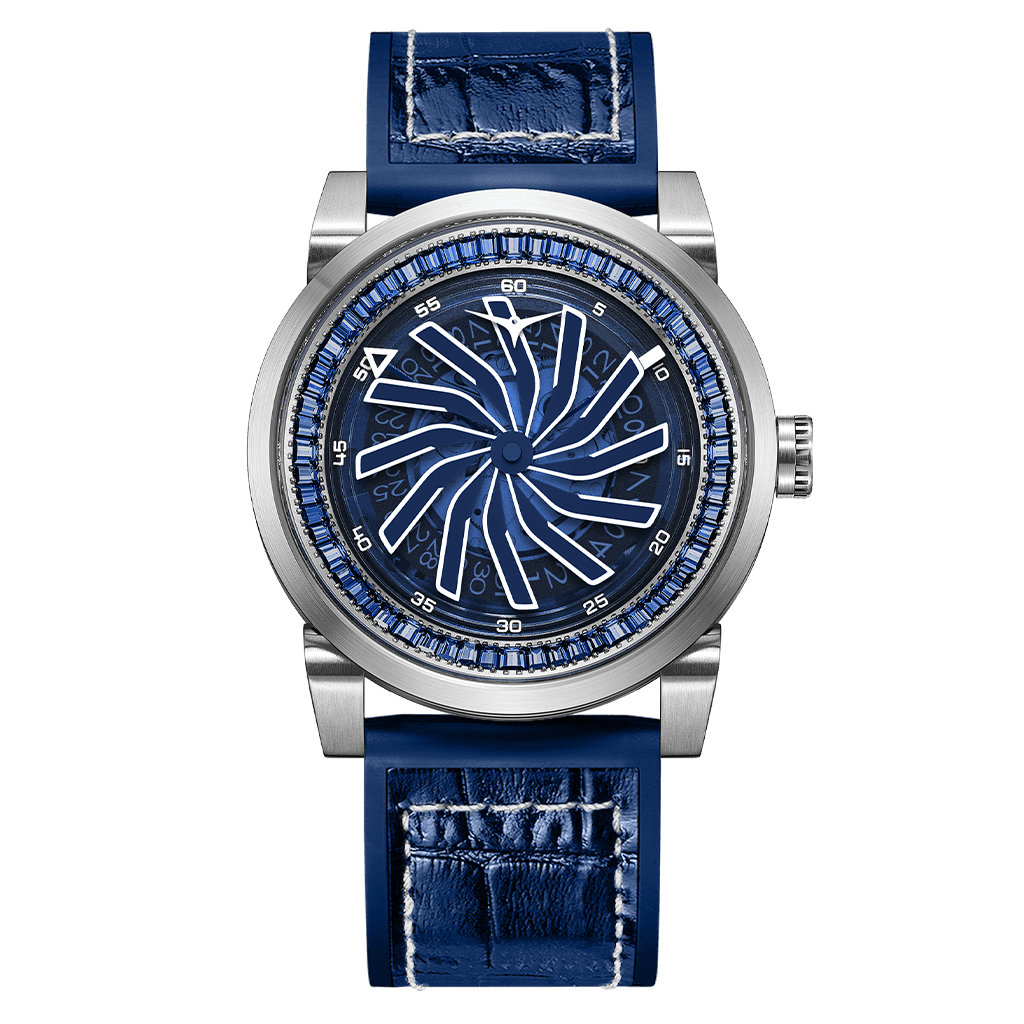 For those who run on their own wavelength. The Blade Indigo Gem sets the vibe with a cosmic swirl of rich blue and luminous sapphire-like stones. Its polished silver case and matching indigo leather strap pulse with modern energy—ready for nights out, boardrooms, and everywhere bold decisions are made. Sleek, hypnotic, unforgettable—this watch makes a statement before you say a word.
