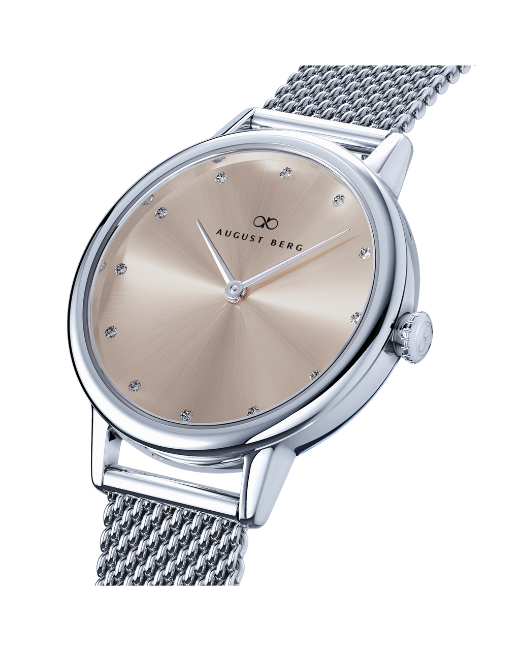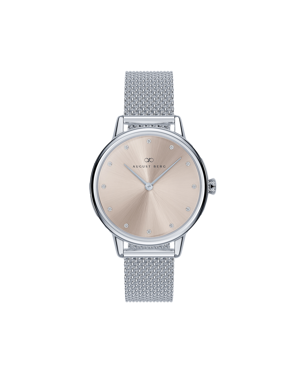 August Berg SERENITY PETITE Silver Champagne Mesh 28mm