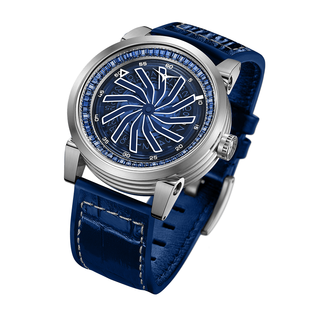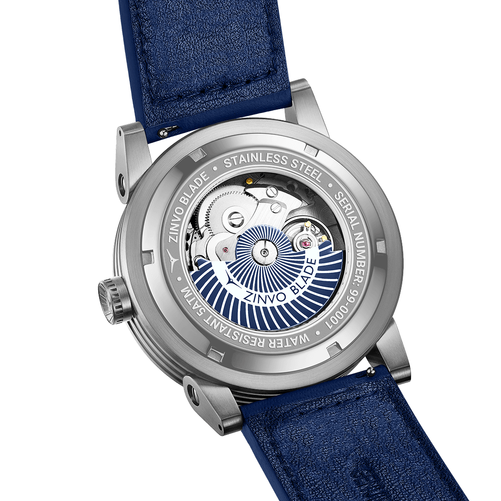 For those who run on their own wavelength. The Blade Indigo Gem sets the vibe with a cosmic swirl of rich blue and luminous sapphire-like stones. Its polished silver case and matching indigo leather strap pulse with modern energy—ready for nights out, boardrooms, and everywhere bold decisions are made. Sleek, hypnotic, unforgettable—this watch makes a statement before you say a word.